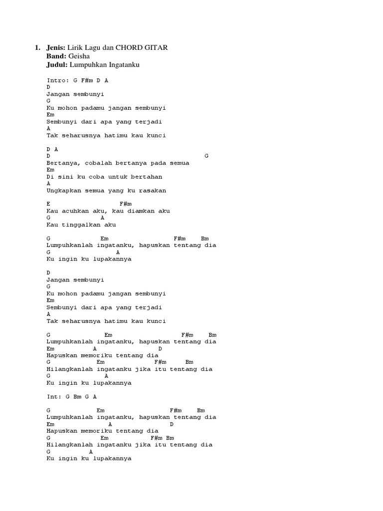 Chord Lumpuhkanlah / Download Lagu Lumpuhkan Lah Ingatanku Hapuskan Tentang Dia : We did not find results for:. We did not find results for: Check spelling or type a new query. Maybe you would like to learn more about one of these?