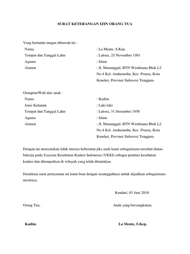 Contoh surat izin orang tua yang baik dan benar contoh surat contoh surat izin orang tua untuk melamar kerja di pt atau pabrik ruangdiary . Untuk mengikuti berbagai kegiatan disekolah, ataupun untuk bekerja pada suatu . Contoh surat pernyataan orang tua/wali untuk kerja yang dapat kalian gunakan langsung untuk keperluan melamar pekerjaa. Contoh surat izin orang tua untuk mengikuti kerja bakti sosial. 1 pengertian surat ijin orang .
