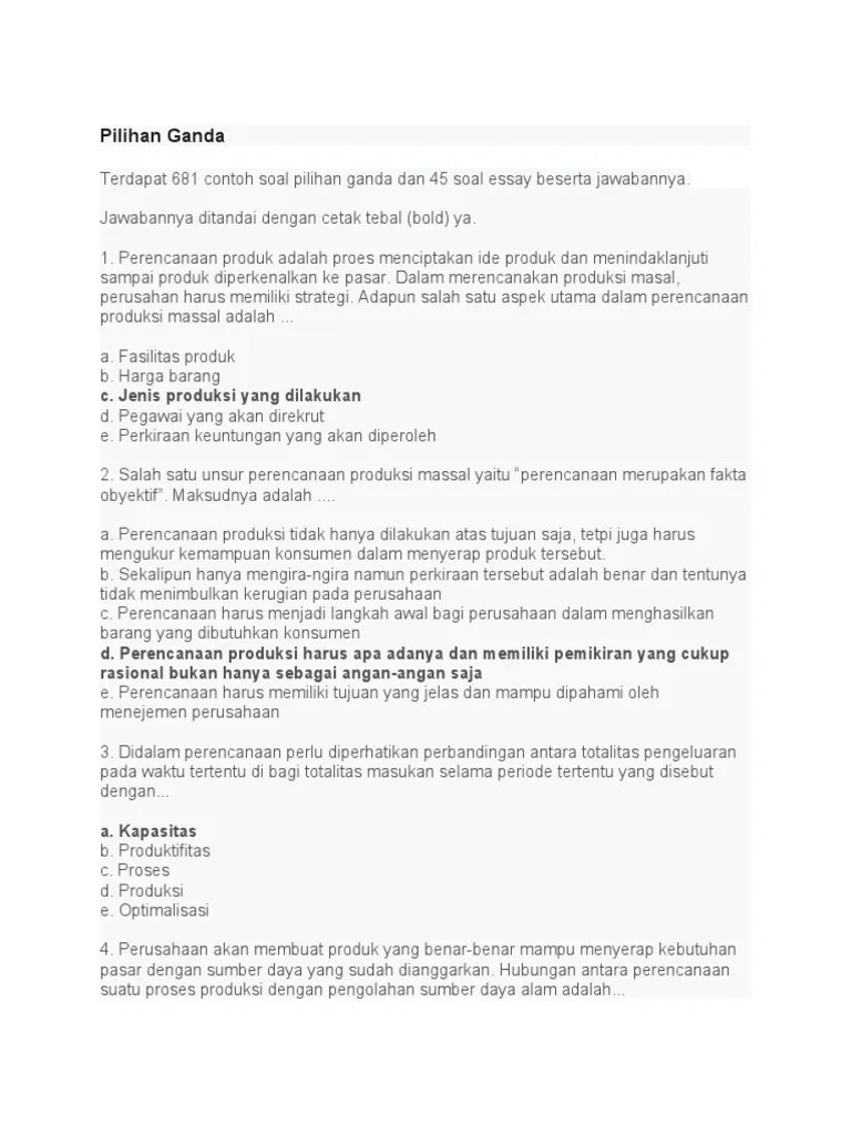 Terdapat 980 contoh soal pilihan ganda dan 90 soal essay beserta jawabannya.
